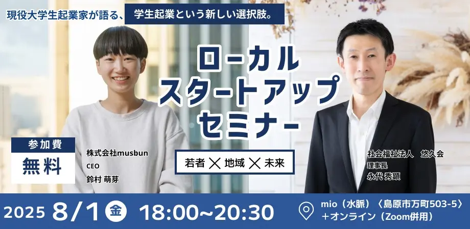 8/1 “現役大学生起業家”が島原に登壇!ローカルスタートアップセミナー開催