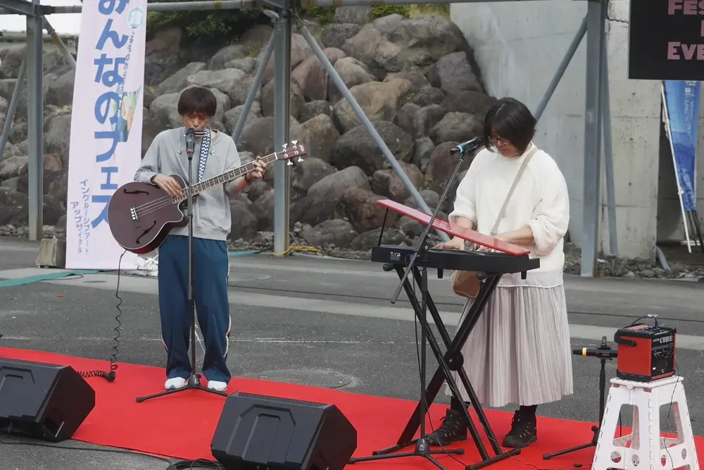 今年度のみんなフェスでは、障がいの有る無しに関わらず地域の福祉事業所の皆様や県内外で活動されている様々な音楽団体やユニットの皆様にがまだすドームの広場にてパフォーマンスをしていただきました。