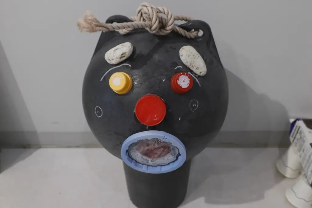 参加者は家にしまってあるような布切れや発泡スチロール、牛乳パック、廃棄品の空き缶やペットボトル、また流木や廃棄品の漁業用の浮きなどに思い思いに塗料やスプレーを施したりして ハンドメイドの作品を仕上げていきました。