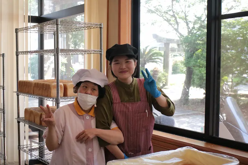 主な業務はパンの製造と販売です。それに加えて、「施設外就労」として島原の野菜卸売会社から委託された袋詰め作業の引率や、季節によってはイチゴの収穫・箱詰めなど、地域の依頼に応じた農作業のサポートにも携わっています。合間を見ては、販売戦略や今後の売上計画についても考えるなど、多岐にわたる業務に携わっています。